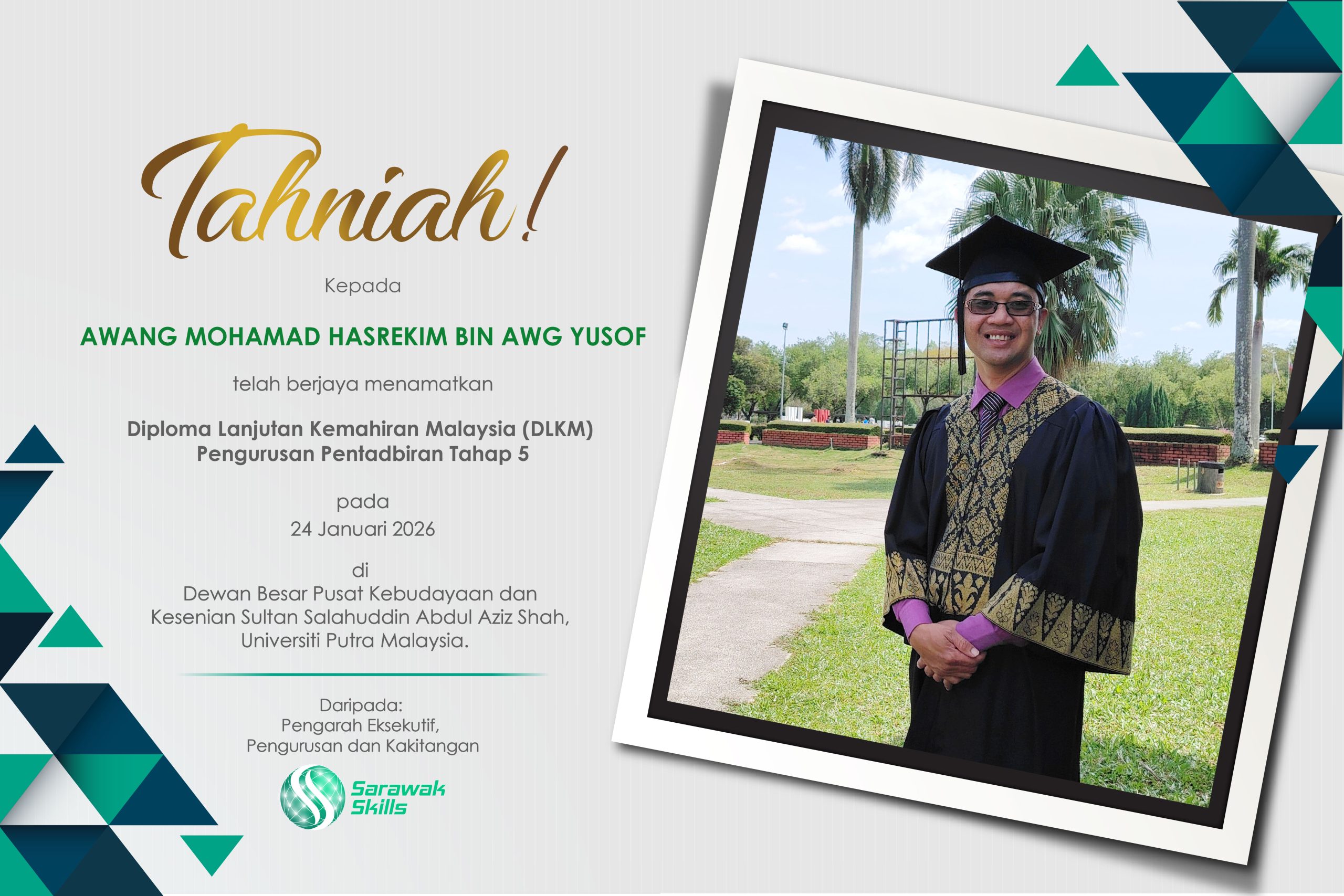 "I wish to thank Sarawak Skills for the opportunity to join the fully-funded programmes, namely the Deeptech and Futureskills Upskilling Programme, and Certificate in Safety and Health Officer (CiSHO) Programme. Joining the two programmes was an eye-opening experience, and enabled me to acquire an industry-relevant skill set"