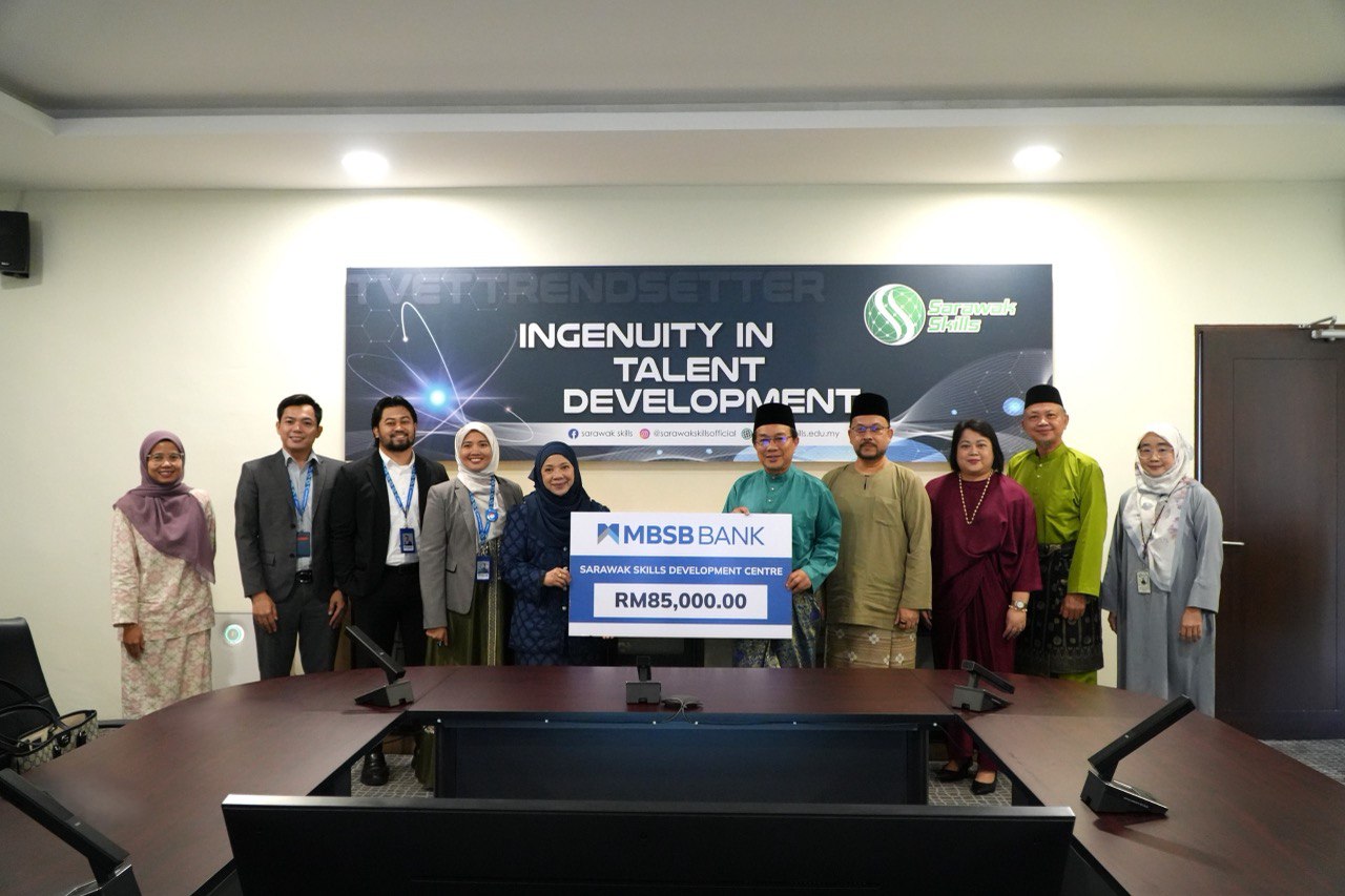 Sarawak Skills received a contribution of RM85,000 from MBSB Bank Berhad to assist 340 Muslim students from underprivileged B40 families under the Sarawak Skills Group of Learning Institutions. The contribution forms part of MBSB Bank’s Corporate Social Responsibility (CSR) initiative, aimed at supporting students from low-income backgrounds and easing their financial burden while pursuing their technical and vocational education.