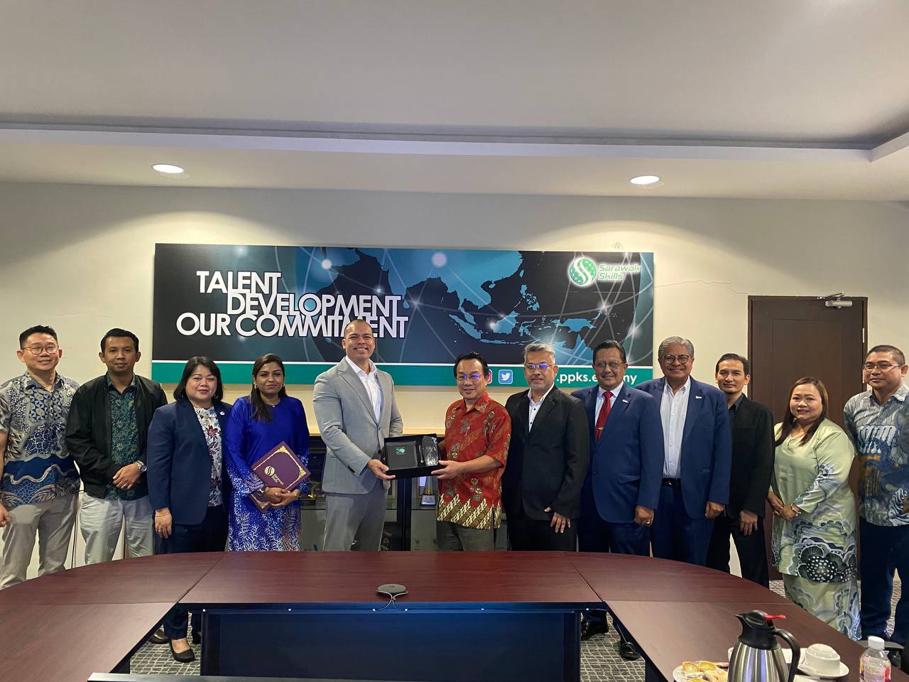 Mr. Hallman bin Sabri (seventh from right) present a memento of souvenir to Mr. Andrew Pereira (fifth from left)