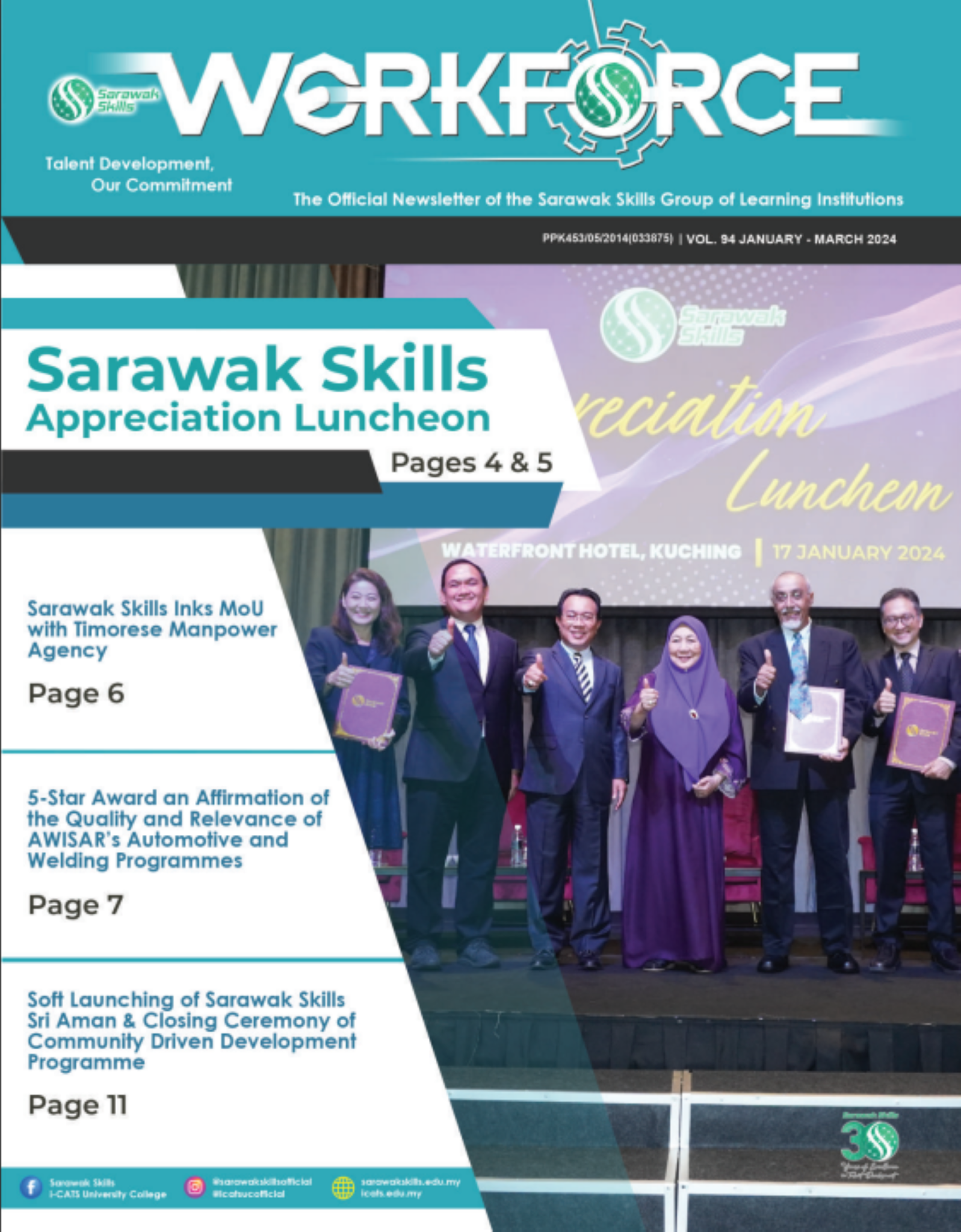 WORKFORCE WORKFORCE VOL.94 Published December 15, 2025 Share SHARE You Might Also Like WORKFORCE VOL.100 WORKFORCE VOL.99 WORKFORCE VOL.98 WORKFORCE VOL.96 WORKFORCE VOL.95 Share This Article Facebook Copy Link Print Follow USFind US on Social Medias Facebook Linkedin Tiktok Instagram Popular News WRITE UP SARAWAK SKILLS ACHIEVES OUTSTANDING RESULTS IN NATIONAL TVET PROGRAMME RATING 2025 January 7, 2026 TVET NEXTGEN CAMP PROGRAMME STRENGTHENS FUTURE SKILLS DEVELOPMENT AT SMK LUBOK ANTU MEMORANDUM OF COLLABORATION (MoC) EXCHANGE CEREMONY AND PRESENTATION OF CERTIFICATES FOR THE WRITTEN INSTRUCTIONAL MATERIALS (WIM) WORKSHOP UNDER THE JOB GUARANTEE PROGRAMME